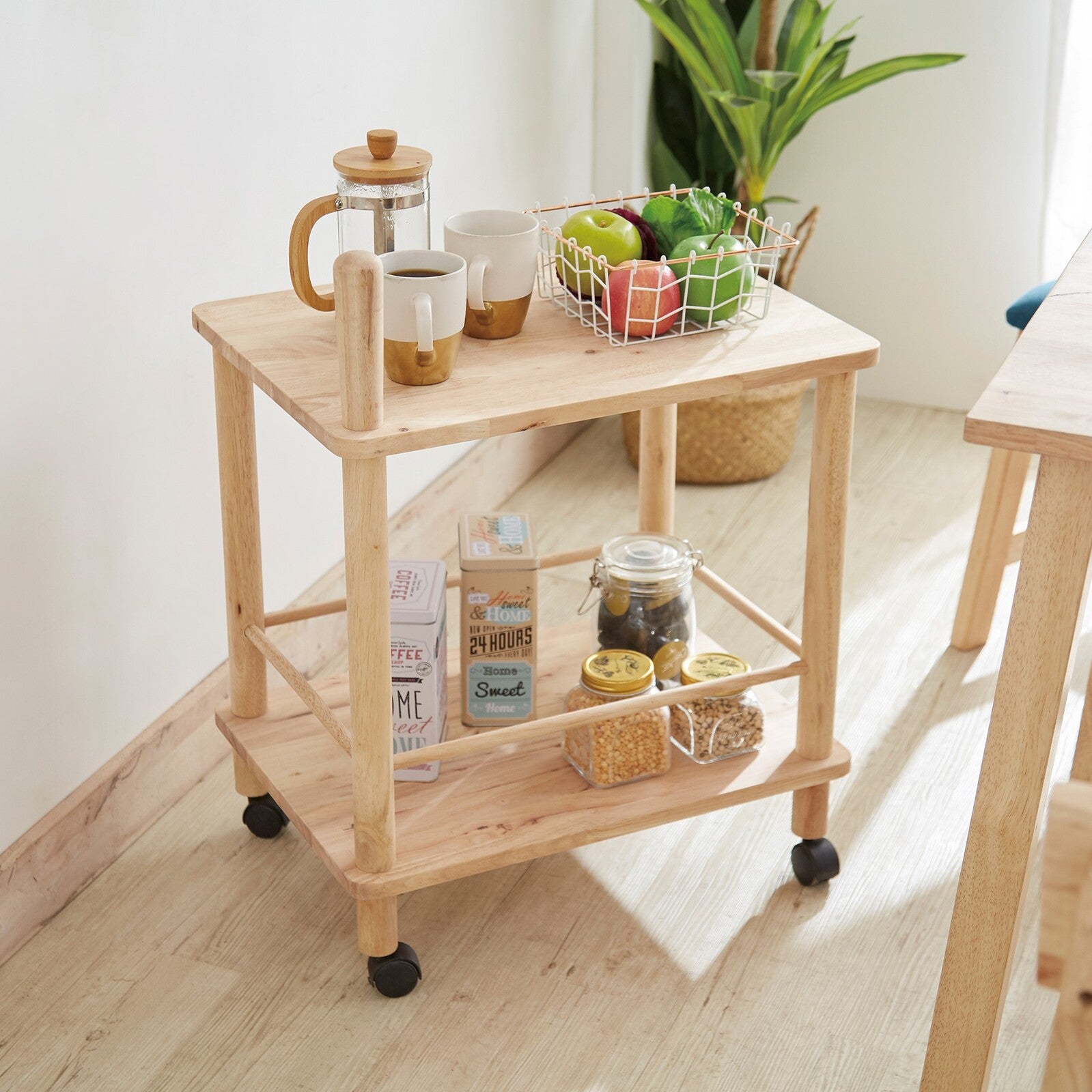 シンプルな木製ワゴンで、どんなお部屋にもマッチします。サイドテーブル、ナイトテーブル、デスクワゴンなど、多用途にお使いいただけます。